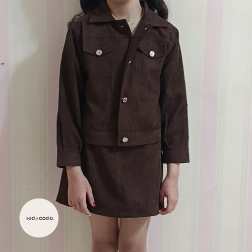کت دامن مخمل کبریتی آستردار نسکافهای Kidacoda