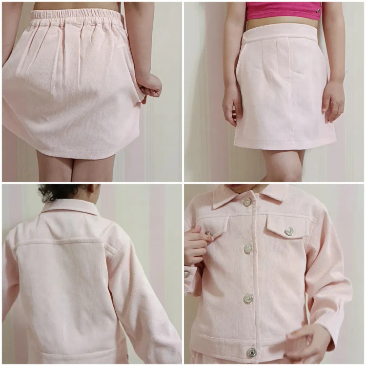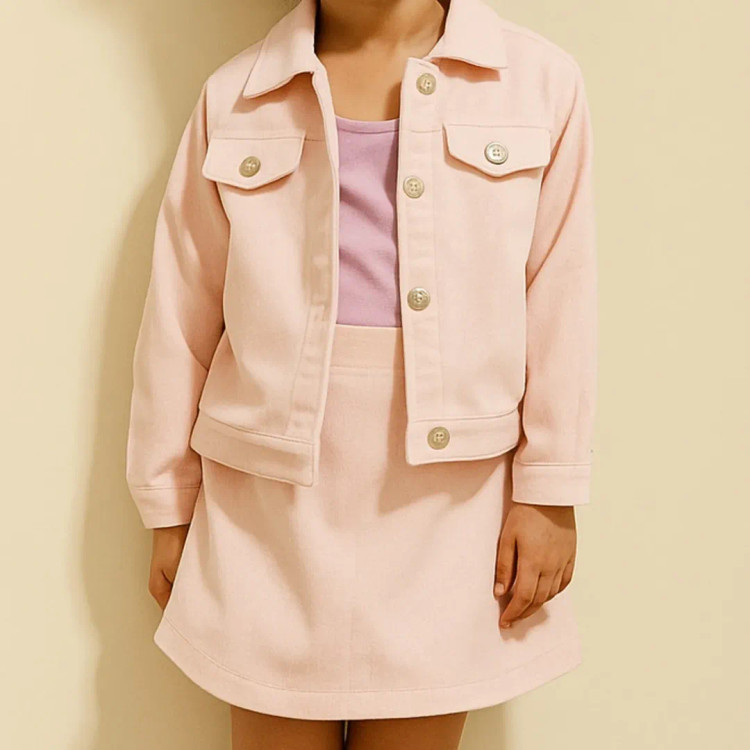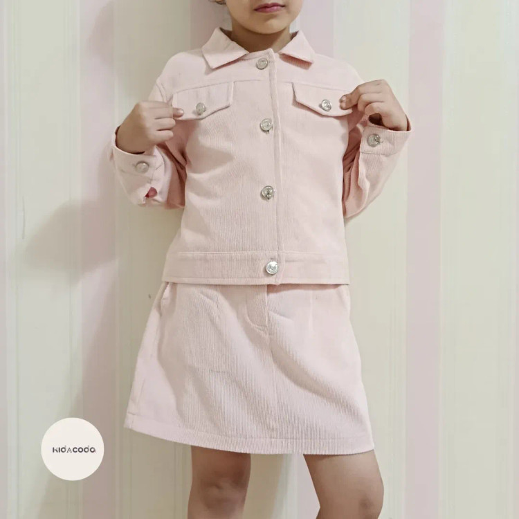 کت دامن مخمل کبریتی آستردار صورتی مجلسی عیدانه دخترانه بچگانه Kidacoda