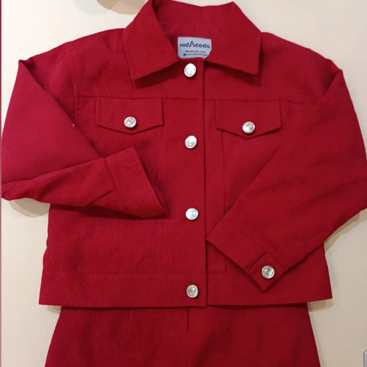 کت دامن مخمل کبریتی آستردار قرمز دخترانه بچگانه