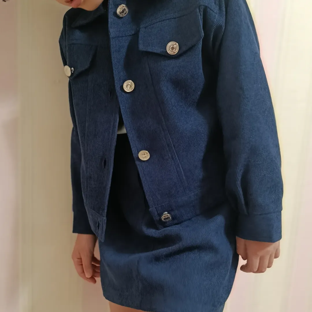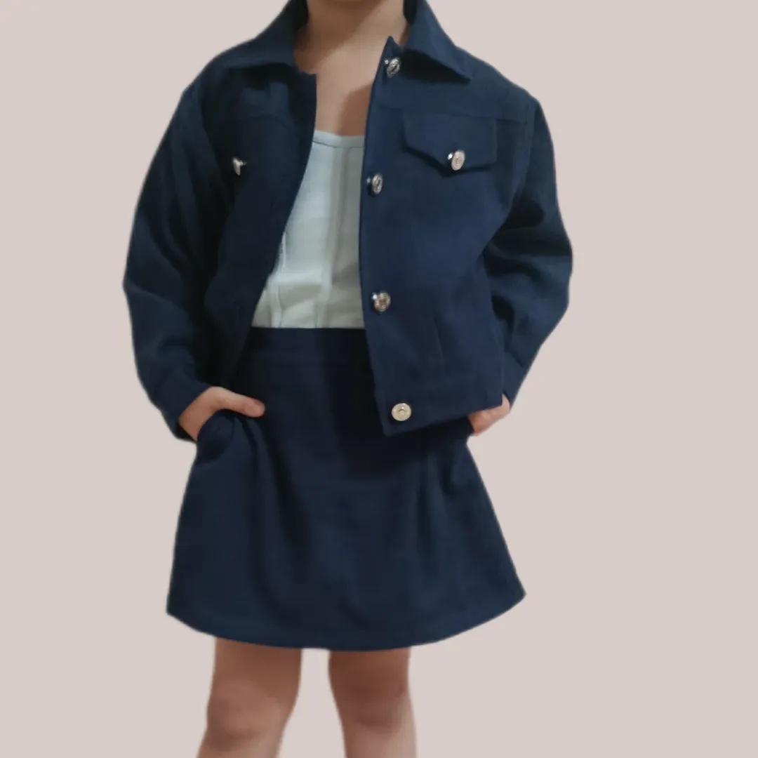 کت و دامن اسپرت مخمل کبریتی سرمه ای دخترانه