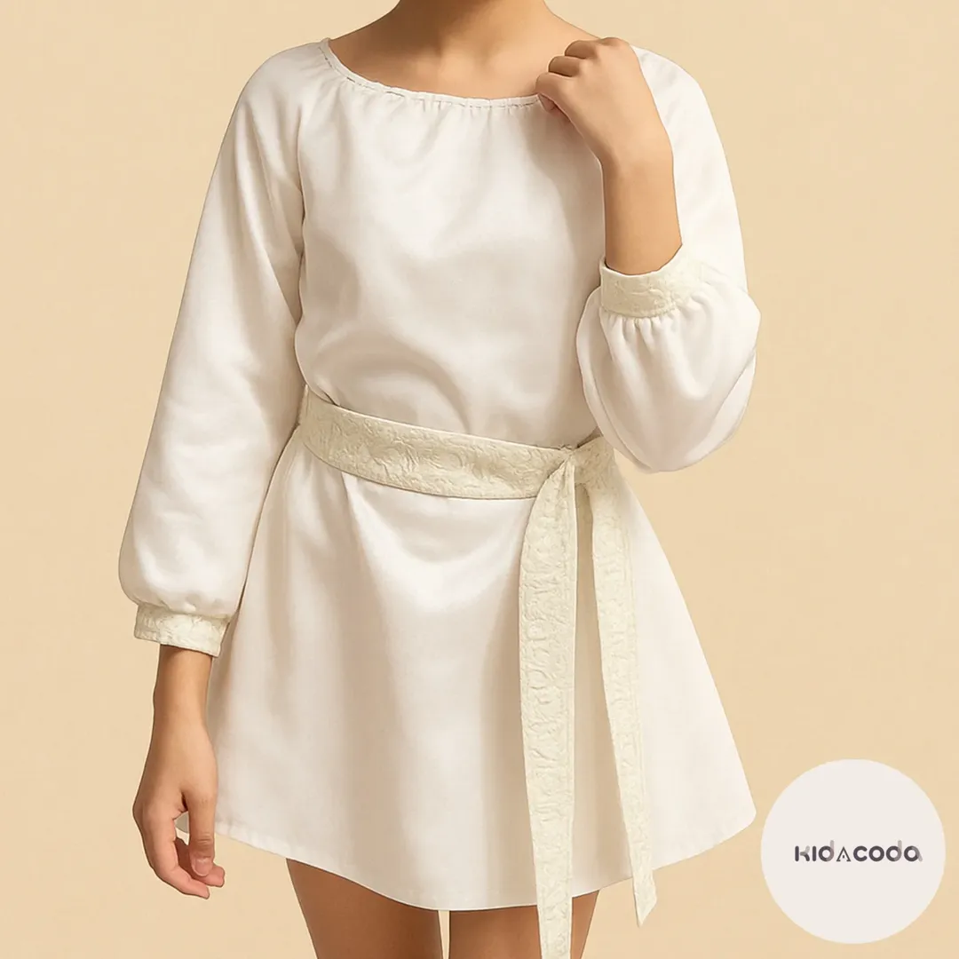 ناموجودپیراهن رومی رنگ صدفی با کمربند و مچ ژاگارد دخترونه